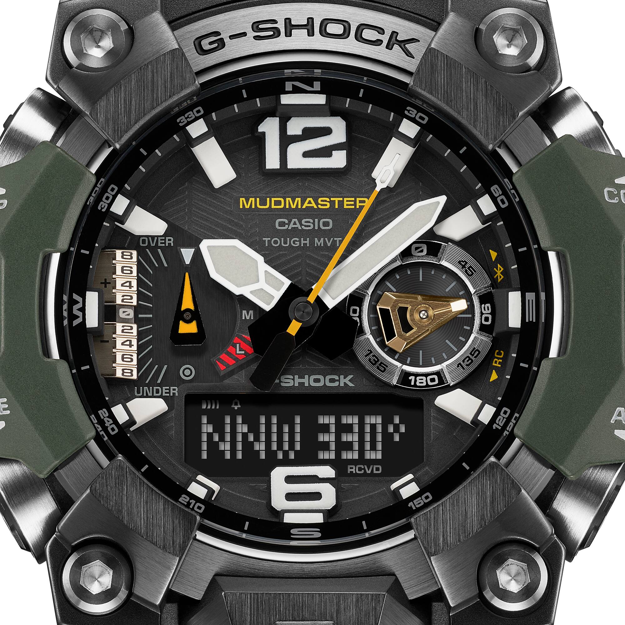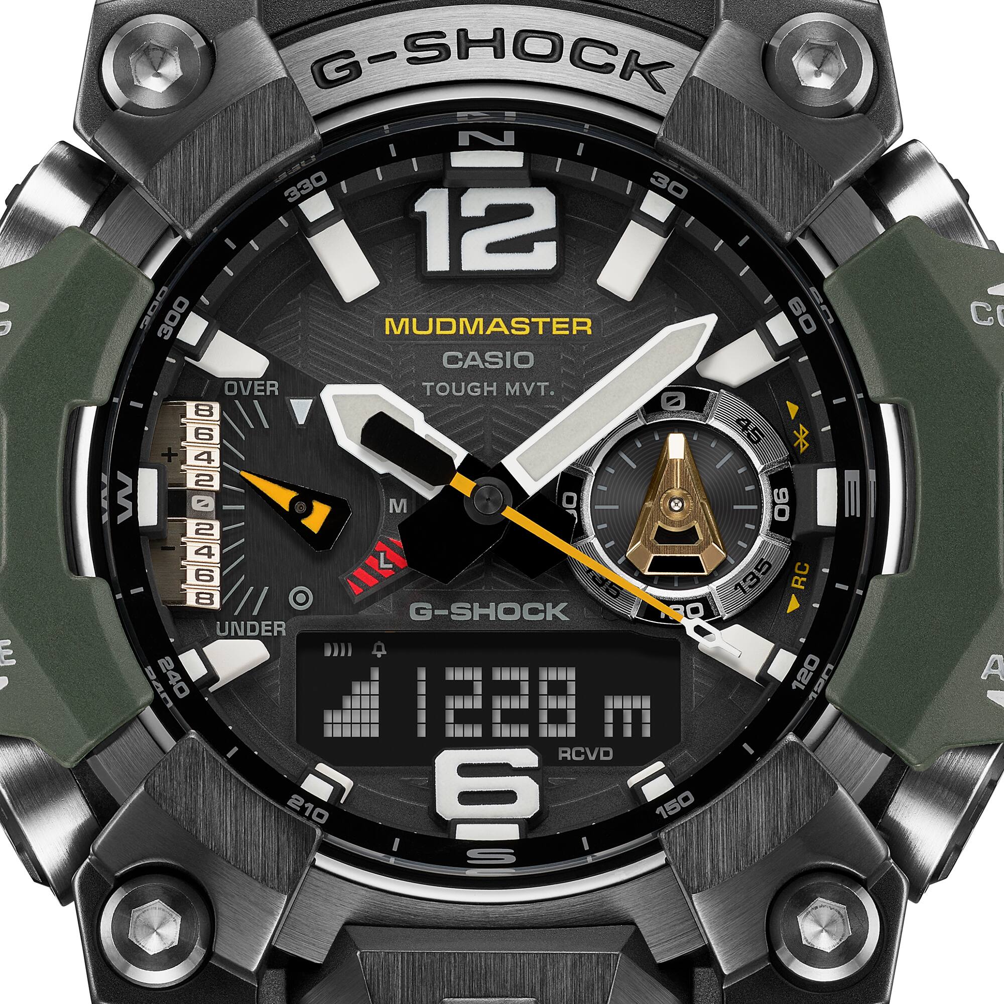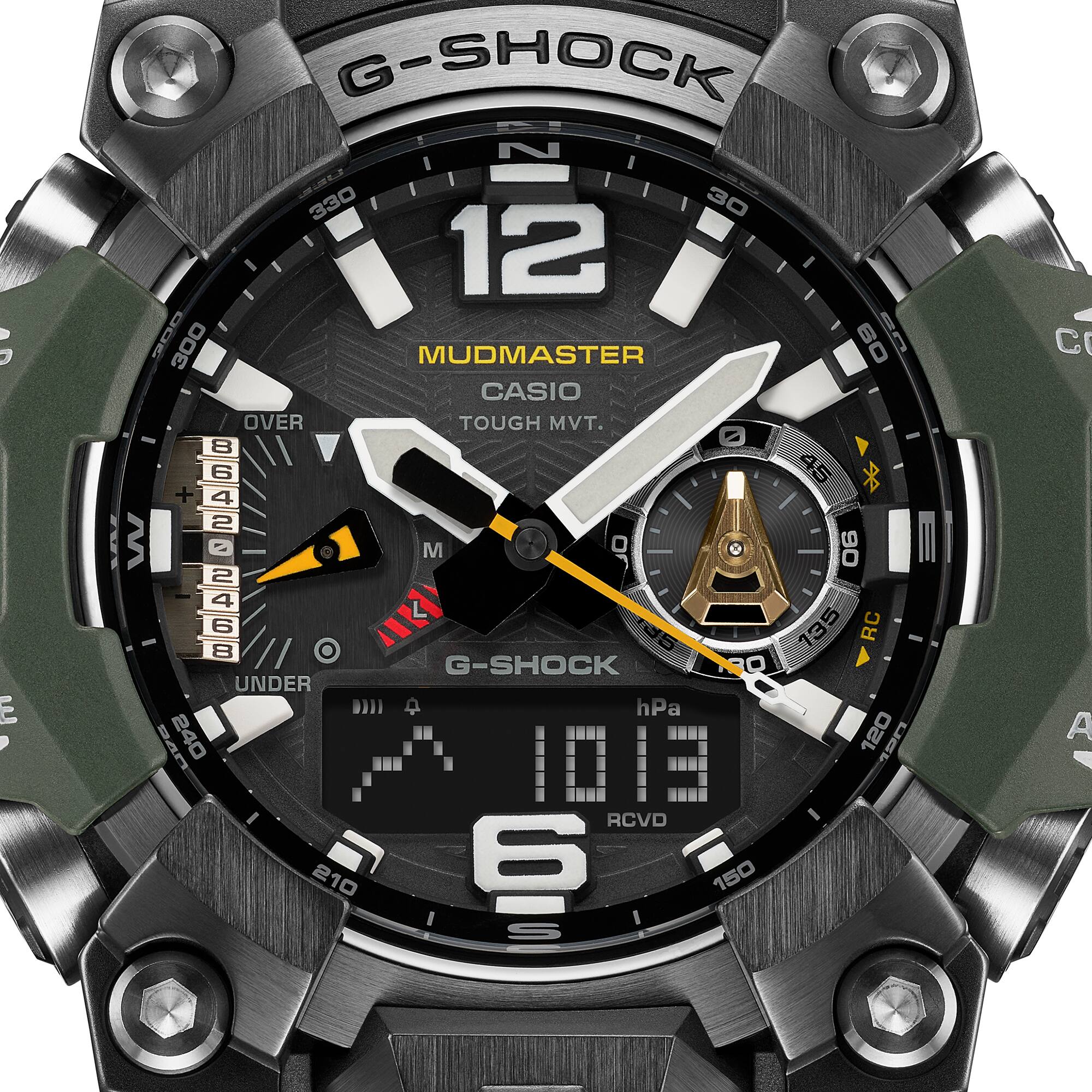이 강하고 내구성 높은 Master of G Mudmaster 플래그십 시계로 두려움 없는 모험과 편안한 착용감을 즐겨보세요. 아날로그-디지털이 결합된 이 시계는 더욱 편안해진 착용감과 금속 부품이 내장된 가드 구조의 단단한 외관으로 뛰어난 내구성을 제공합니다. 가장 혹독한 환경에서 작업하는 전문가를 위해 개발된 G-SHOCK Master of G 라인은 더욱 강력한 기능을 갖추고 있습니다. 또한 MUDMASTER는 가장 거친 육상 환경을 견딜 수 있도록 제작되었으므로 극한의 환경에서 활동하는 레인저와 구조 팀의 감사와 신뢰를 얻게 되었습니다. 편안한 크기의 GWG-B1000은 고정밀 단조 기법으로 제작된 금속 외관과 고강도에 뛰어난 내구성을 갖춘 탄소 섬유 강화 레진 케이스가 특징입니다. 무선 제어 및 태양광 동력으로 작동하는 이 시계에는 방향, 고도, 기압, 온도 판독값을 지속적으로 업데이트하는 트리플 센서가 장착되어 있습니다. 또한, 이중 LED 조명과 사파이어 크리스탈은 높은 가독성을 보장하므로 어떤 환경에서도 항상 시간과 기타 판독값을 볼 수 있습니다. 앱에 특정 위치를 입력하면 위치 표시기가 표시 바늘을 3시 정각 위치로 이동시켜 해당 방향을 가리키므로 모래 폭풍과 같은 극한 조건으로 시야가 가려진 경우에도 항상 정로를 유지할 수 있습니다. 케이스와 일부 베젤 부품 및 밴드에 바이오 기반 레진을 사용함으로써 환경에 대한 MUDMASTER의 약속을 보여줍니다. *탄소 섬유 강화 레진의 특성으로 인해 표면에 나타나는 패턴 및 컬러는 모델에 따라 다릅니다.