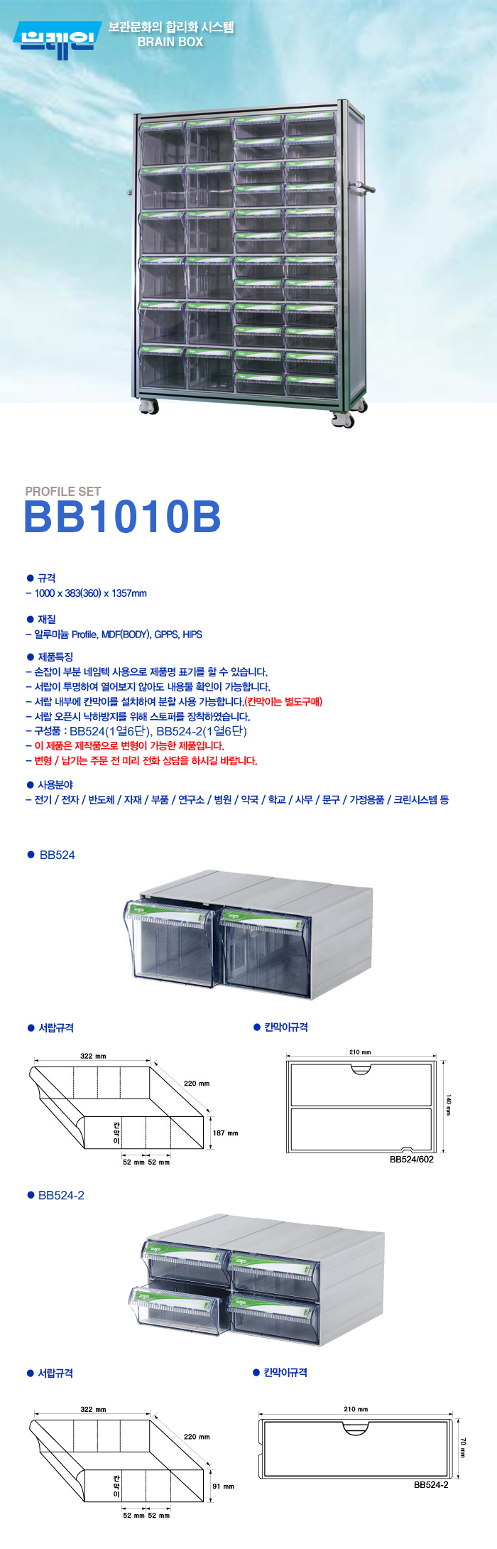 이동형 단면 제품구성 : BB524 = 6EA / BB524-2 = 6EA 제품규격 : 가로1000mm 세로360mm 높이1357mm (케스타포함) 제품재질 : 알루미늄Profile / MDF(BODY)
