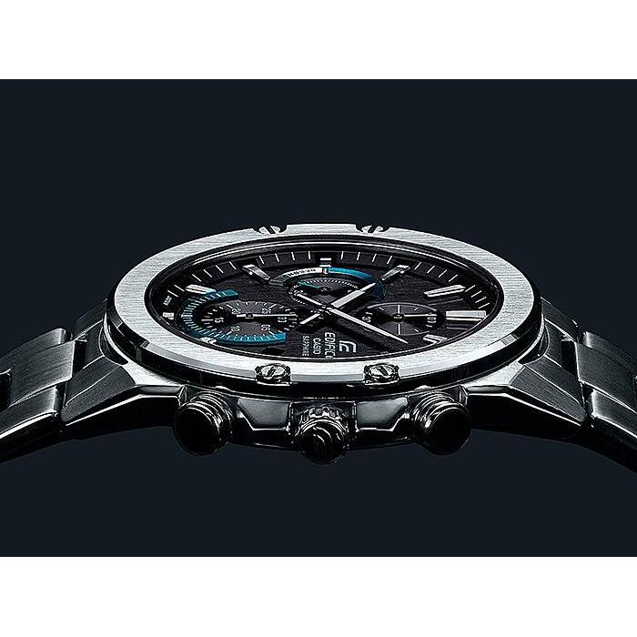 사파이어 크리스탈이 있는 EDIFICE 슬림 시리즈 | 시계 바늘이 있는 크로노그래프임에도 불구하고 이 모델은 9.5mm 두께의 케이스가 탁월한 착용감을 선사합니다. 평면 헤어라인 마감 베젤, 바늘, 인덱스를 고정하고 있는 나사 4개에 그린 컬러가 스포티한 마감을 선사합니다. 헤어라인 마감의 다이얼로 고품질 느낌을 연출할 수도 있습니다. 스크래치 방지 사파이어 크리스털을 사용합니다.