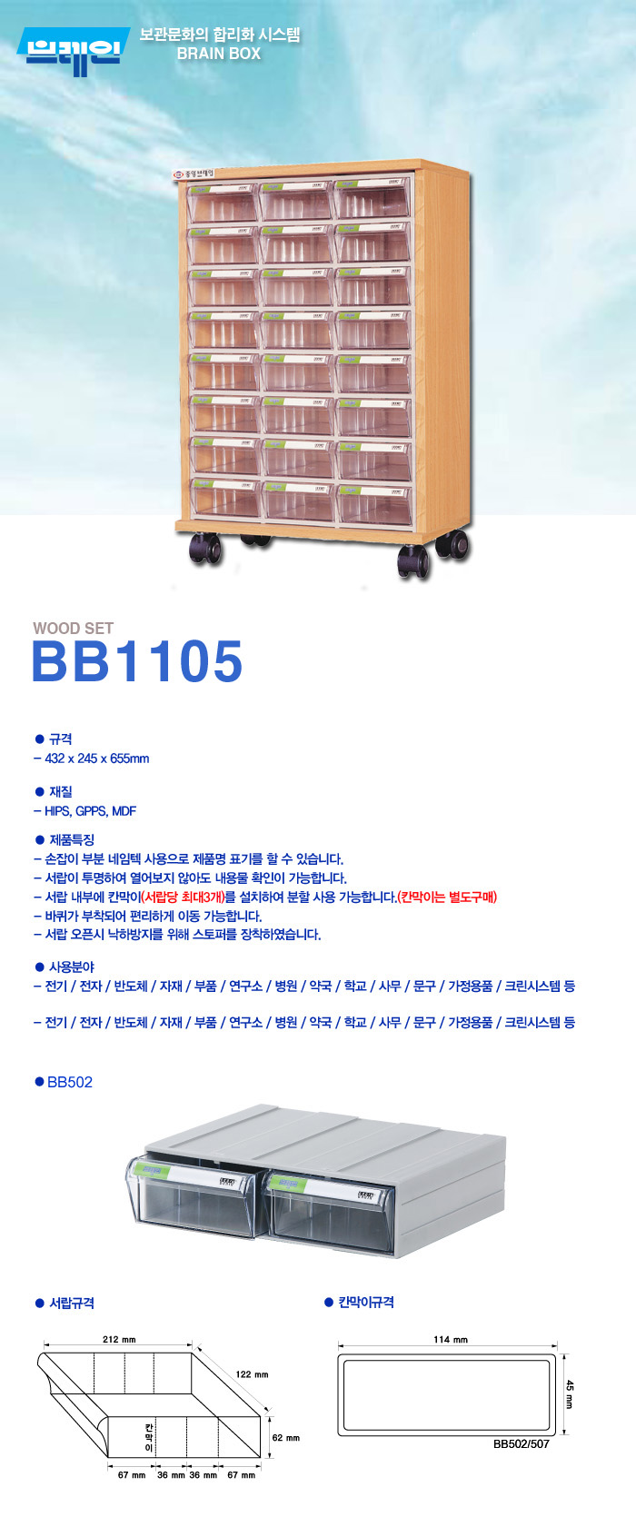 이동형 제품구성 : BB507서랍 = 24EA 제품규격 : 가로432mm 세로245mm 높이655mm(케스타 포함)