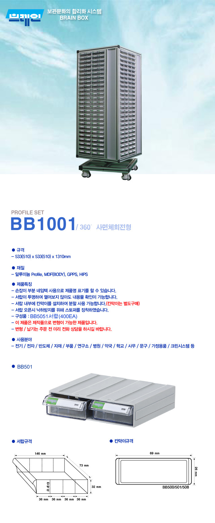 BB1001 투명 플라스틱 다용도 부품 정리 서랍 박스 상자 함 장 프로파일(셋트형)