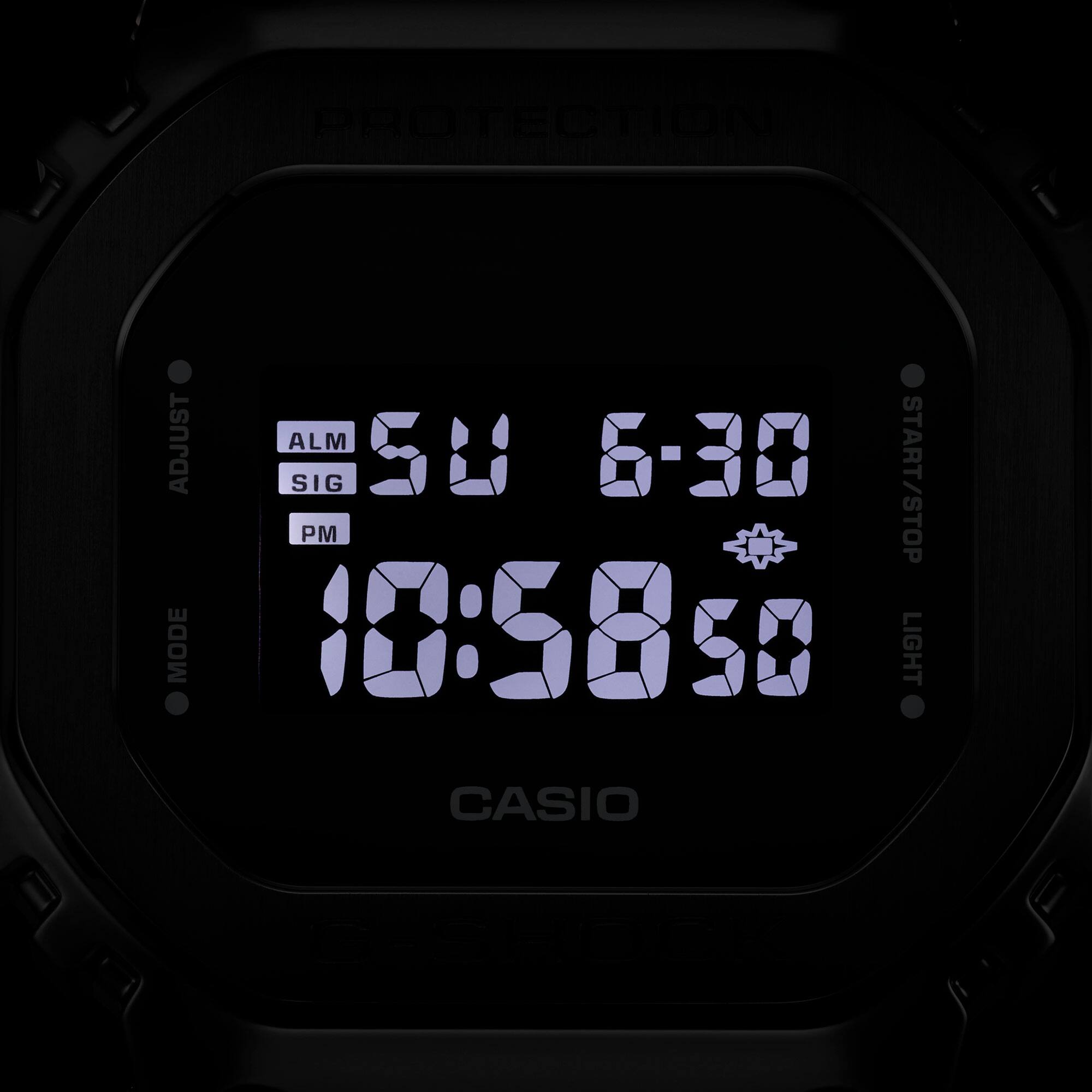 끊임없이 강인함을 추구하는 G-SHOCK에서 출발한 이 모델은 사각형 디자인 5600 시리즈의 금속 소재를 사용했습니다. 케이스 내부에 수지 소재, 베젤 커버에 단단한 스테인리스 스틸 소재를 사용하여 가볍고 편안한 착용감을 유지하면서 고급스러운 느낌을 선사합니다. 반전 LCD를 사용해 더욱 세련되게 마무리되었습니다. 1세대에서 이어받은 컨셉을 유지하고 있는 5600 시리즈는 품질과 외관, 착용감이 모두 개선되었습니다.