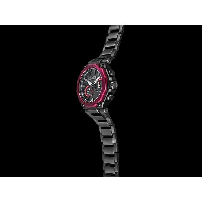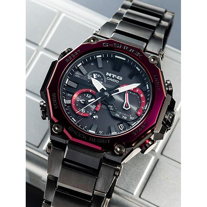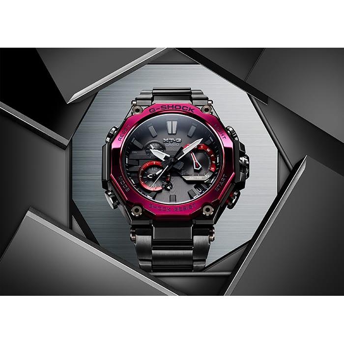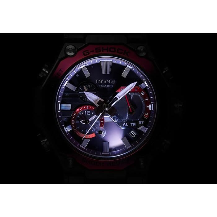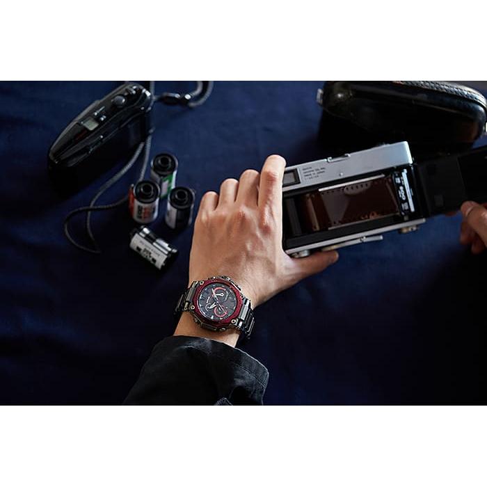내충격성 금속과 수지를 융합한 바디에 첨단 기술을 탑재한 카본 클래드 MT-G 모델.모듈을 통합 카본 모노코크 케이스로 보호하고 외부를 금속 부품으로 덮어 듀얼 코어 가드 구조를 구축했습니다.케이스 측면은 세련된 디자인을 위해 금속으로 만들어졌습니다.금속 프레임과 베젤을 분리하여 강렬한 컬러링을 구현했습니다.외부 금속 부품은 미러 마감 처리되었으며 측면 버튼은 가드리스 구조입니다.또한 투명도가 높은 사파이어 유리 크리스털을 사용하고 카시오 야마가타 공장의 가공 기술을 통해 가능해진 섬세한 조각은 전체 제품에 고품질의 질감을 제공합니다.교체 가능한 레이어드 합성 밴드가 특징이며 금속의 질감을 개선했음에도 불구하고 무게를 줄였습니다.Bluetooth® 연결을 통해 전용 CASIO WATCHES 앱에 연결하여 시간 정보를 얻습니다.또한 Multi-Band 6, Tough Solar, 고휘도 LED 조명과 같은 실용적인 기능이 탑재되어 있습니다.