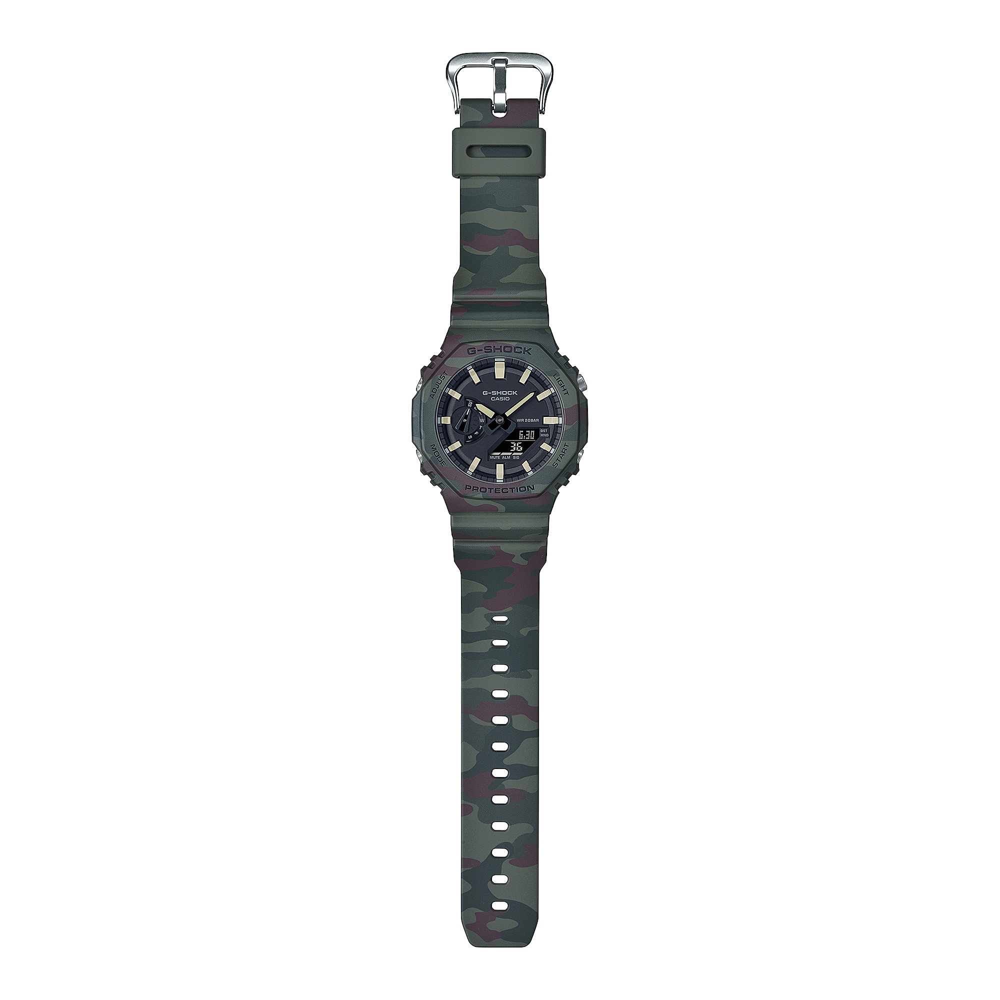 미지의 세계에 대한 무한한 애정을 품은 모험가로부터 영감을 받은 강인한 디자인의 G-SHOCK입니다. 얇은 8각형 GAE-2100에 교체 가능한 밴드와 베젤로 야생의 분위기를 더하세요. 녹색 자연에서 영감을 받은 카무플라주 디자인에 생동감 넘치는 아웃도어 패션의 오렌지 색상이 더해져 완성된 쿨하고 캐주얼한 스타일 덕분에 세련된 도시 거리에서도 야생 탐험을 하는 기분을 느낄 수 있습니다.