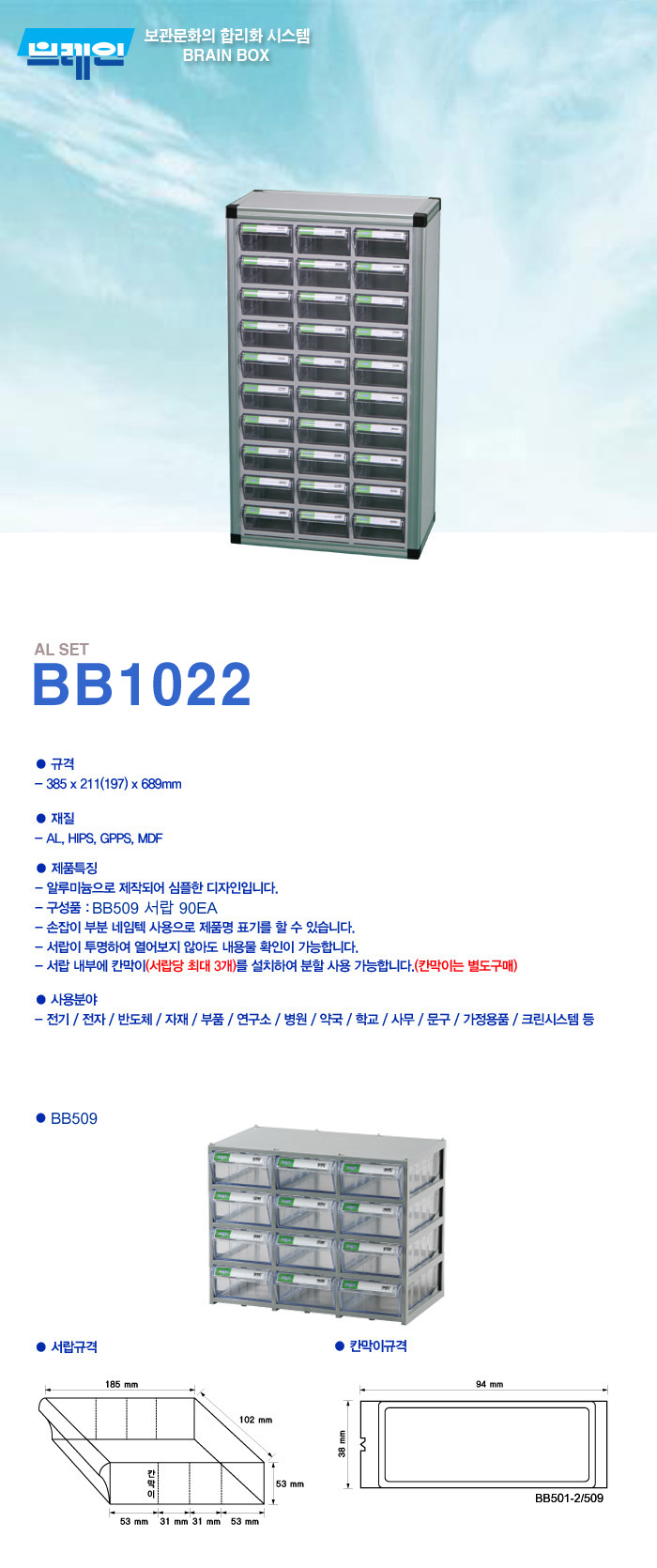 BB1022 투명 플라스틱 다용도 부품 정리 서랍 박스 상자 함 장 알루미늄(셋트형)