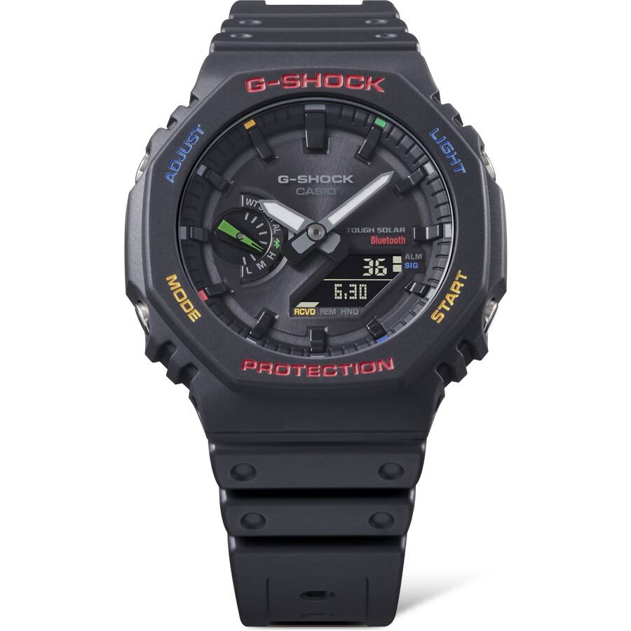 누가 여러분이 유쾌하면서 강인해질 수 없다고 말하나요? 다채로운 색상 포인트가 돋보이는 견고한 G-SHOCK을 소개합니다. 이제 파티와 놀이를 즐길 준비가 되었습니다. 이 시계는 GA-2100의 독특한 8각형 형태를 유지하고 스마트폰 연결 및 Tough Solar 충전과 같은 편리한 기능을 갖춘 GA-B2100을 기반으로 합니다. 또한 카본 코어 가드 구조 구조를 채택하여 오리지널 모델과 유사한 손목 착용감을 선사합니다. 좋아하는 패션과 쉽게 매치할 수 있는 검정색 흰색, 녹색과 같은 모노톤 색상이 밝은 빨간색, 파란색, 노란색, 녹색과 함께 베젤 인레이 섹션, 다이얼 부품, 인덱스 마크 및 9시 방향의 인셋 다이얼 표시기를 장식하고 있습니다. 덕택에 색종이 조각과 같은 색상 흐름이 미니멀한 디자인과 반짝이는 대비를 주면서 특별한 느낌을 선사합니다. 친구들과 어울리거나 야외 콘서트 또는 축제에서 댄스를 추는 등 유쾌한 일상 스타일을 표현할 수 있습니다.