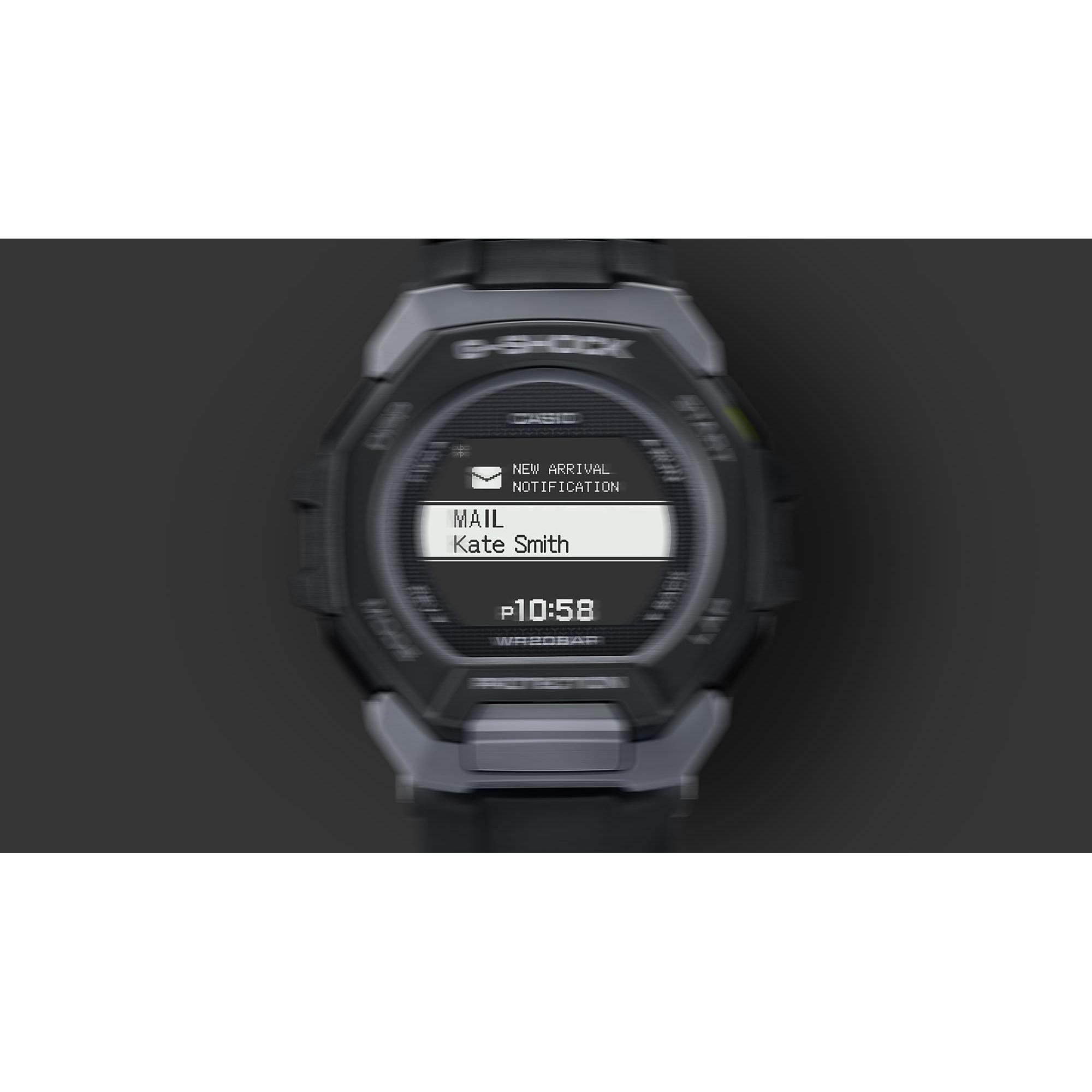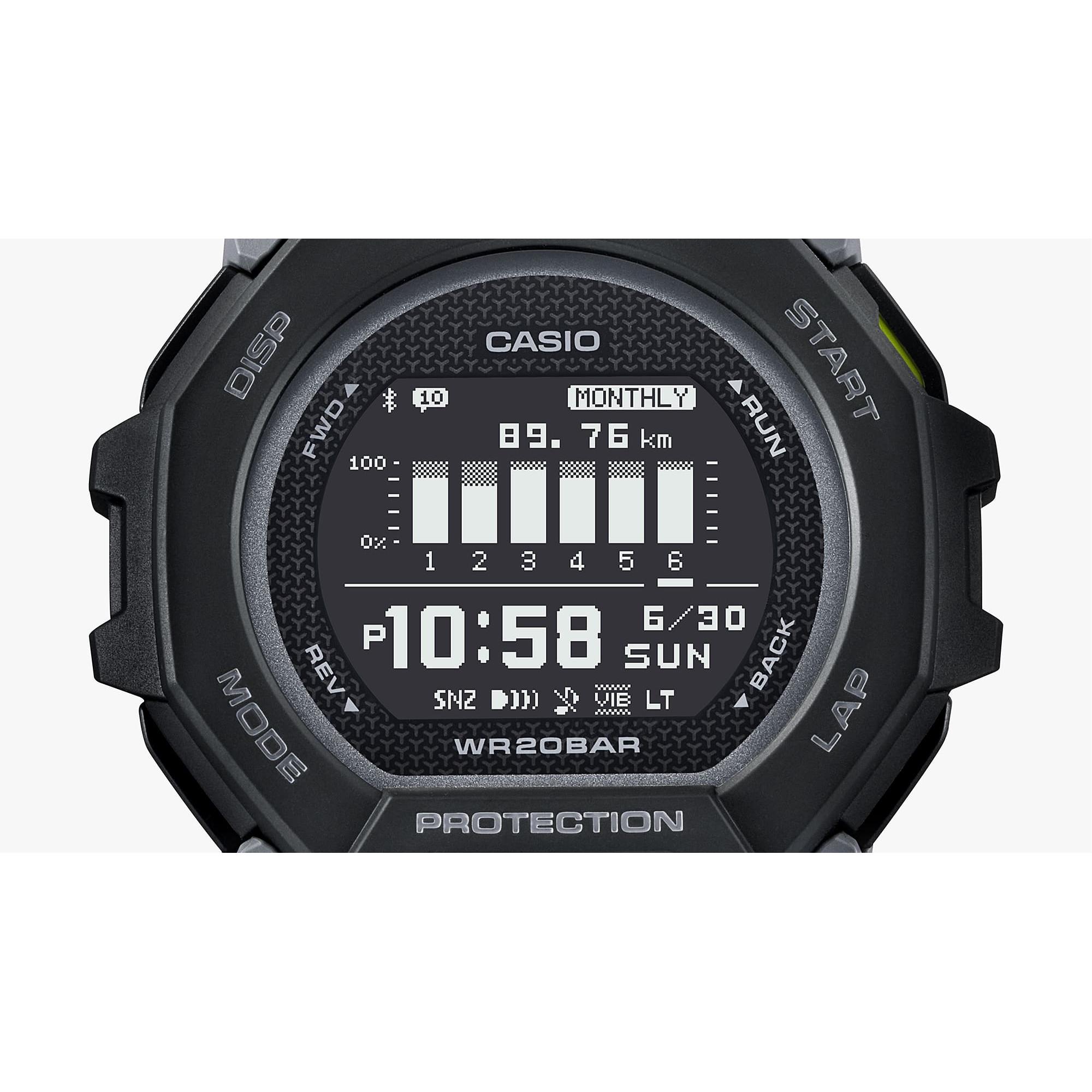 Introducing the GBD-300 line for your active everyday — the tough, sports-oriented G-SQUAD designed to make training fun. Find more joy in your workout with the GBD-300, packed with practical functionality to support running and other training regimes. With accelerometer, distance tracking, Smartphone Link, high-resolution display, and more, this G-SQUAD has you covered — from managing your everyday health to improving your endurance. Use the GPS functionality of a paired smartphone to adjust distance measurements, after which the watch can measure running distance more precisely even when not connected to your phone. Equipped with Auto Lap, the watch also tracks running pace and automatically keeps track of times over a set distance. Tap into the dedicated app for visuals that help you see your own personal records and easily manage life log data and activity history. Set the watch to vibrate, alerting you to time elapsed, calories burned, and other milestones during training, and you won’t miss any telephone, email, and social media notifications, either. The display features high-resolution memory-in-pixel (MIP) LCD and Super Illuminator. Together with the auto-light function, which automatically lights with just a tilt of the wrist during running, the GBD-300 ensures visibility, even at night. Thanks to a shock-resistant structure that places the case between a front bezel and a back bumper bezel, the GBD-300 boasts the slimmest profile of any G-SQUAD. Made of soft urethane, the band offers an even more comfortable fit with band holes placed at 5mm intervals for finer adjustments for a variety of wrist sizes. Soft urethane and a flexible fine-resin covering on the underside keep even vigorous arm movements comfortable. Key resin components used in the case, band, and more are made with bio-based resin, a material expected to help reduce environmental impact.