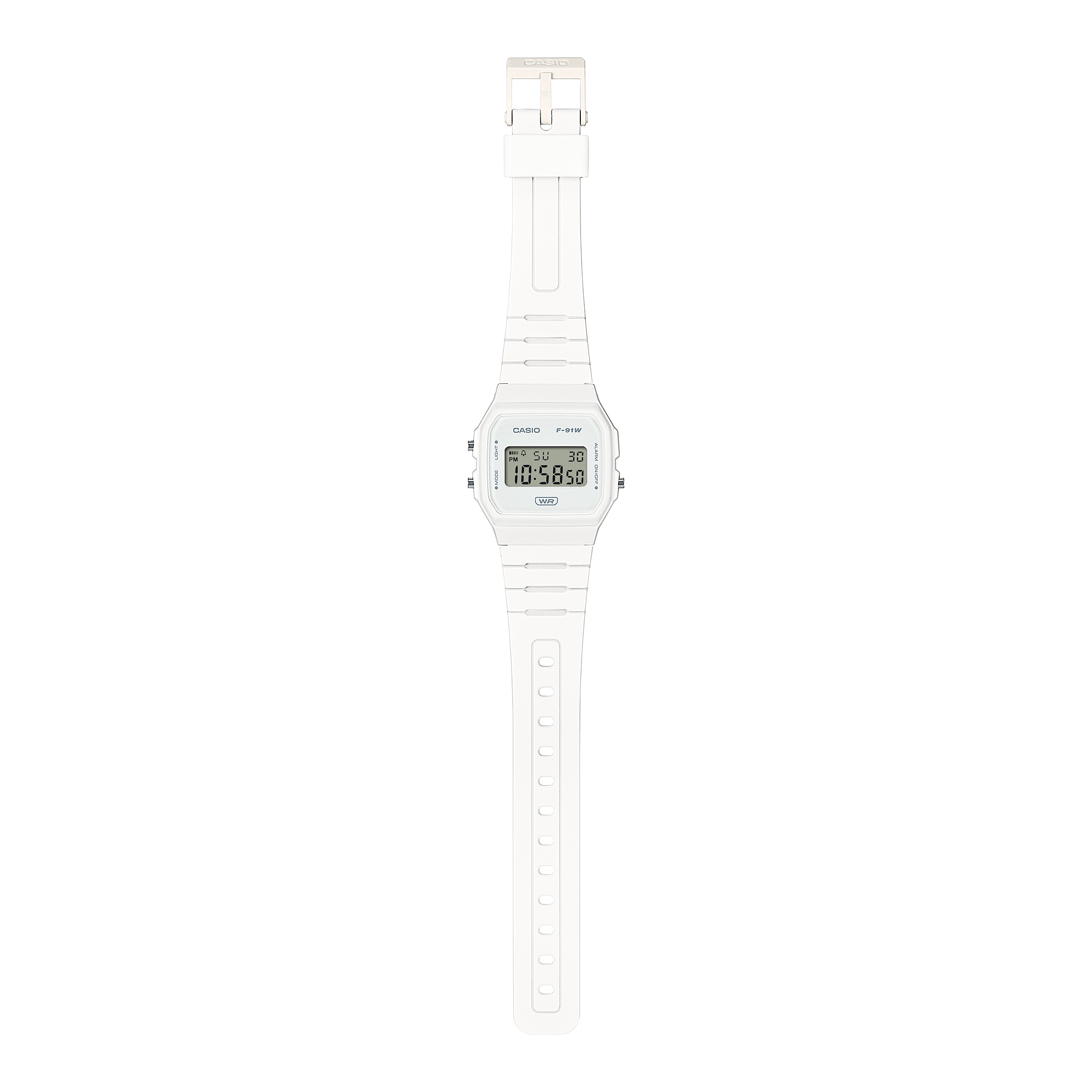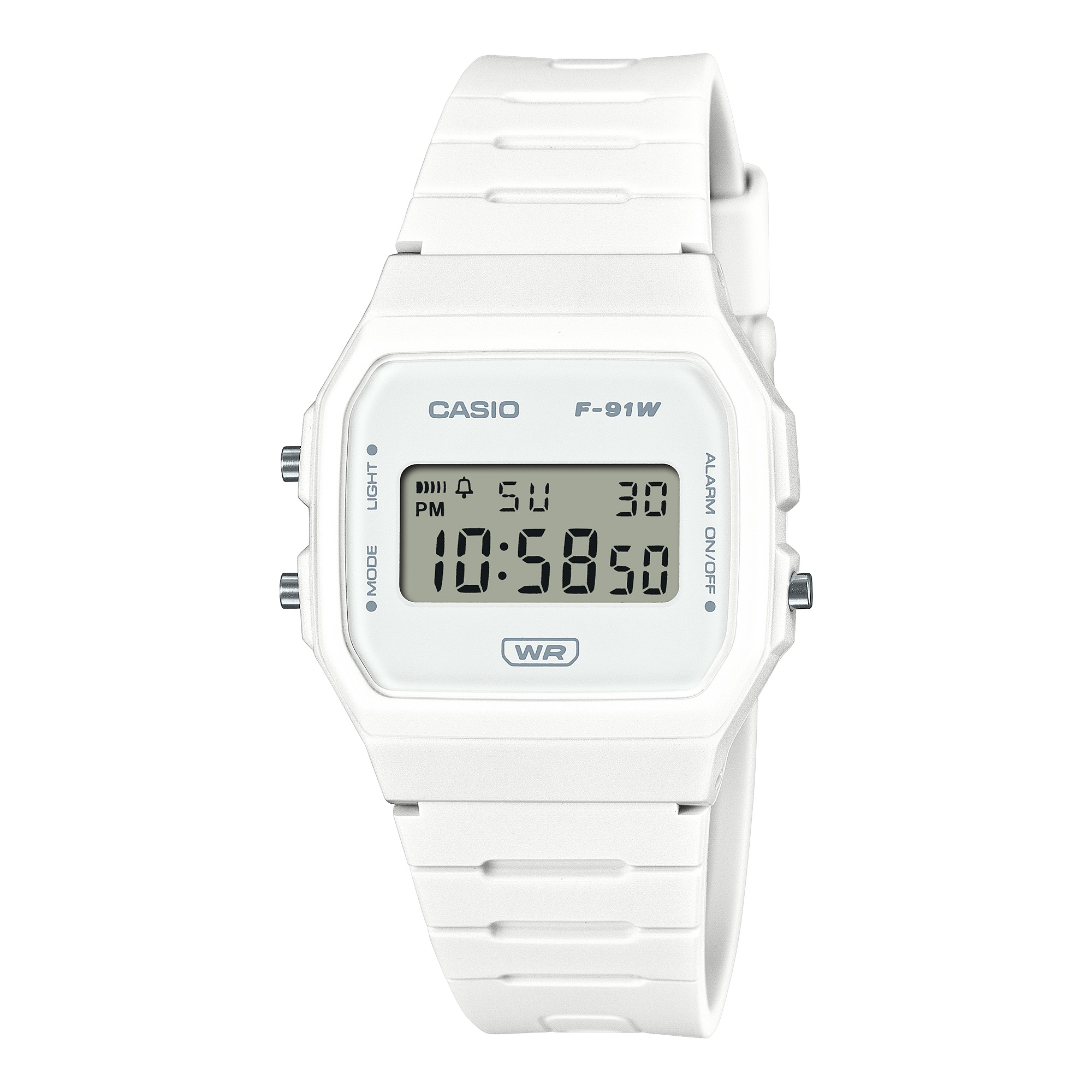 수십 년 동안 사랑받은 제품입니다. 디지털 LCD를 탑재한 슬림하고 가벼운 F-91에는 이제 미니멀한 문자반과 더 적은 모드 인디케이터가 들어가며, 더욱 친환경적인 소재를 사용합니다. 밴드는 바이오 기반 레진으로 제작되어 환경에 미치는 영향을 줄입니다. 날짜/요일 디스플레이, 알람, 스톱워치 및 기타 편리한 기능을 갖춘 이 시계는 다양하게 활용할 수 있습니다.